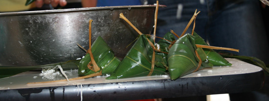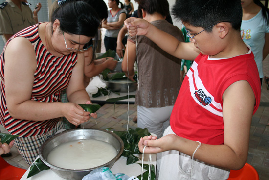 此次活动的主要形式是包粽子比赛,为此,通利物业和通利地产请来了专业厨师为大家讲解了包好粽子的一些细节,并为大家做了示范。之后,所有参赛人员以家庭为单位、每个家庭派出一名代表、时间以十分钟为限,所包粽子最好最多者为冠军。当主持人宣布比赛正式开始时,参赛代表们立刻紧张的忙碌起来,摊粽叶、抓米、放粽心、包裹粽叶、捆绳扎线……,一个个动作连贯下来还真是有模有样,与此同时,家庭其他成员则在旁面指挥比划、助威加油。在活动结束后,冠亚军选手分别获得了一个精美不锈钢电磁炉锅和美式高锅,并被授予“特别厨艺师”称号。