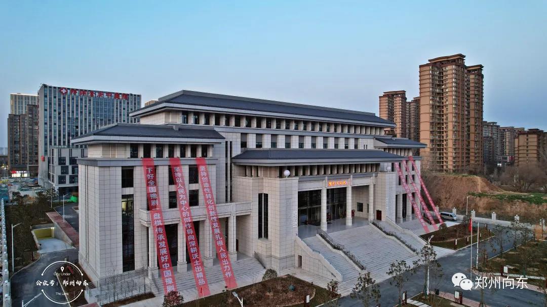 豫剧大剧院位于郑州市郑东新区白沙芦医庙大街与美秀路交叉口,总投资1.2亿元,总占地面积2.4406公顷,建筑总面积16681平方米,包括业务综合楼、大剧院、小剧场、贵宾厅、研学体验厅、豫剧博物馆、排练厅、演职员餐厅、地下停车场等。这是一座集日常排练、创作演出、艺术展览、交流展示等为一体的大型综合文化场所和豫剧特色研学基地。