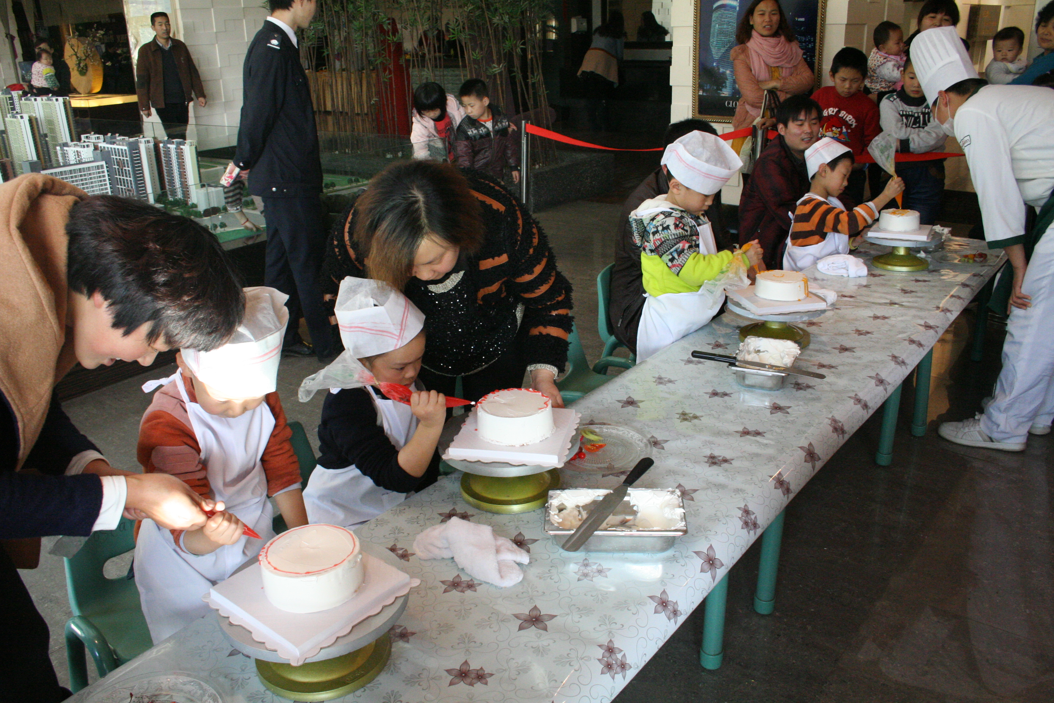 11月17日,秋收冬享的季节,享受丰收是这个季节最甜蜜的话题。紫荆尚都二期再邀广大新老客户共赴一场丰收之旅。晨光尚早,早上9点,参加DIY蛋糕的嘉宾便陆续进入售楼部签到排序。半小时过后,嘉宾按签到排序由糕点师一一现场演示,看见糕点师手下惟妙惟肖的蛋糕,孩子们跃跃欲试!